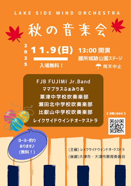- 後援:滋賀県吹奏楽連盟・大津市一般吹奏楽連盟・